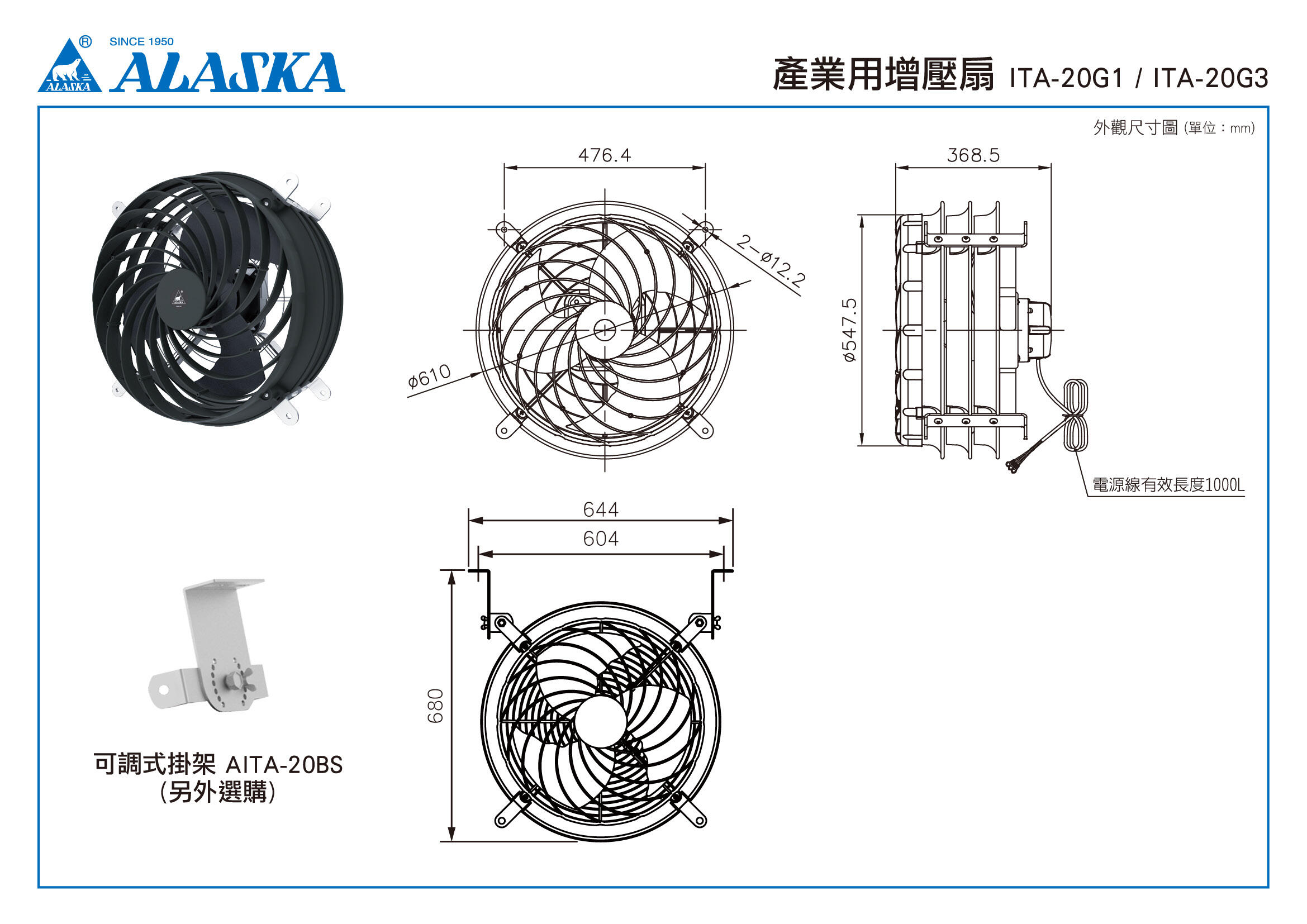 增壓扇懸臂支架 AITA-W101 / AITA-W141 / AITA-W201