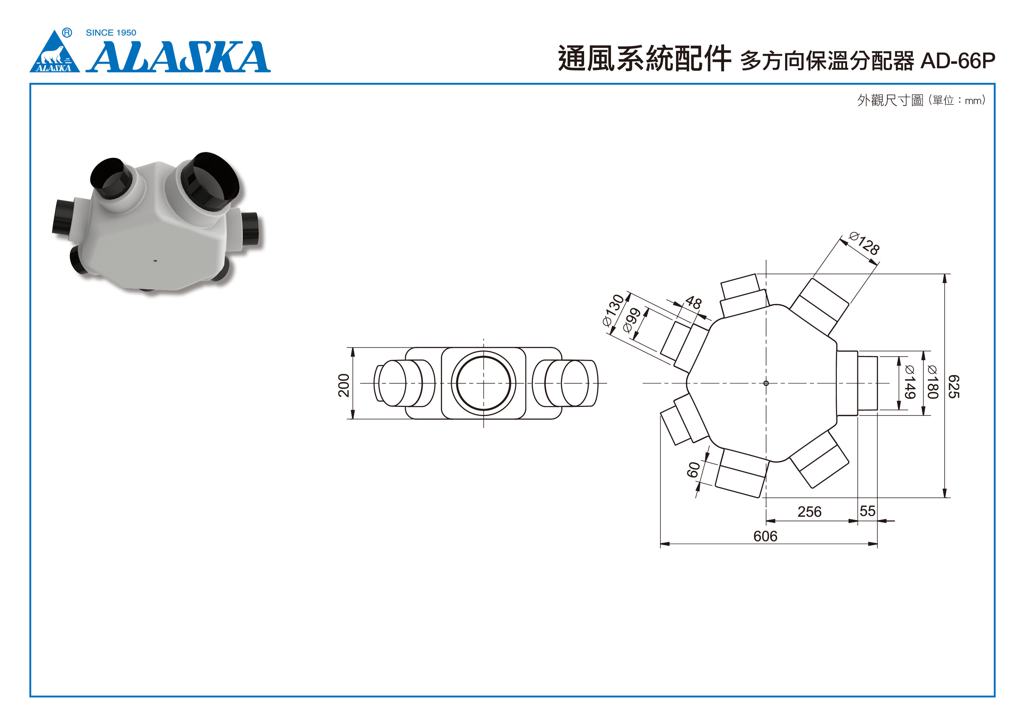 ◆一對六,主風管為6吋管徑,其餘六個分岐風管為4吋管徑。